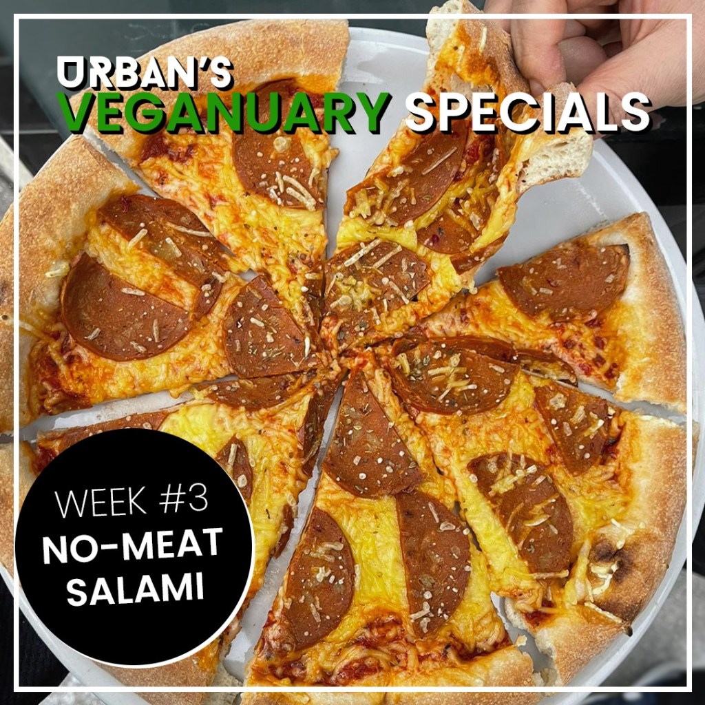 Salami goes pflanzlich? Unser Klassiker mit veganen Salami-Scheiben aus geräuchertem Bio-Seitan. Schmeckt richtig baba.
